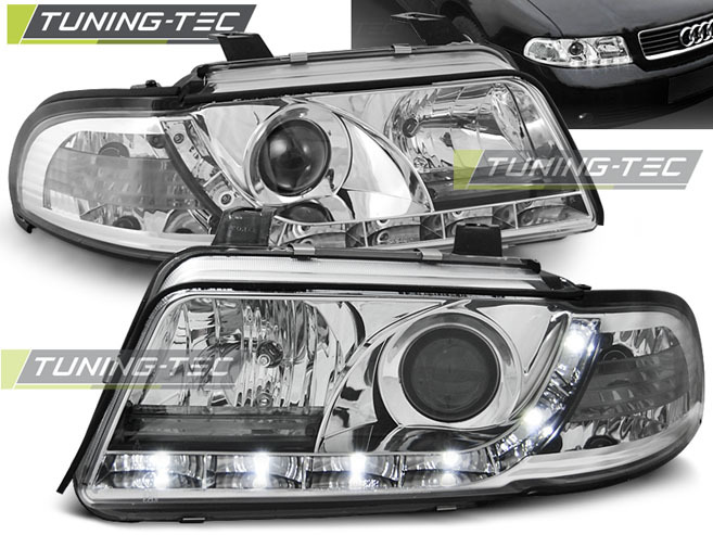 Product information "Headlights Daylight Chrome Fits Audi A4 01.99-09.00"