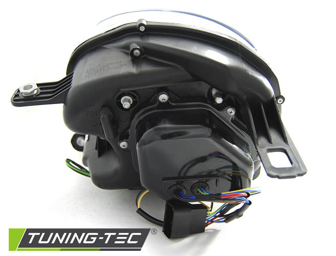 The chrome tube light headlights give your vehicle a distinctive and modern look, while improving night visibility with powerful projector lenses. Designed with integrated LED parking lights and a clear lens finish, these headlights ensure both style and safety. The E-marked approval allows legal street use across Europe. The electrical adjuster enables easy fine-tuning of the beam direction for optimal lighting performance.