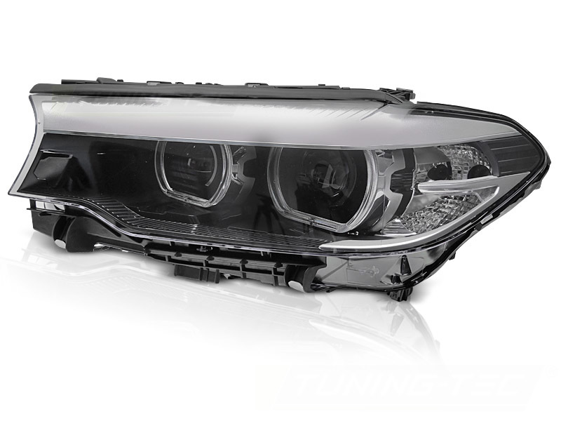 This LED headlight fits the left side and provides excellent illumination for BMW G30 and G31 vehicles from 2017 to 2020. Featuring an E-marked E4 street-legal approval, it ensures both safety and compliance on the road. The headlight offers modern full-LED functionality, including integrated LED daytime running lights, parking lights, and a PY21W turn signal lamp. Both low and high beams are equipped with efficient LED technology. Adjustment is fully electric thanks to the built-in regulator.