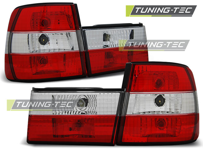 These red and white tail lights fit BMW E34 sedans and offer a perfect combination of style and safety. Manufactured to high quality standards, the lights are E-marked for legal street use. They improve the appearance of your vehicle with a modern, clear design while ensuring optimal visibility and durability. The set includes both left and right side lamps and can be installed easily without special tools.